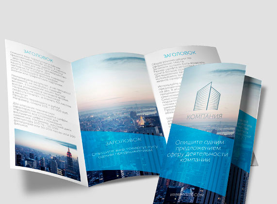 - Стандартно буклет печатают на бумаге плотностью 130-150 г/м2. При использовании бумаги более высокой плотности при большом количество фальцев могут возникнуть трудности из-за суммарной толщины изделия.